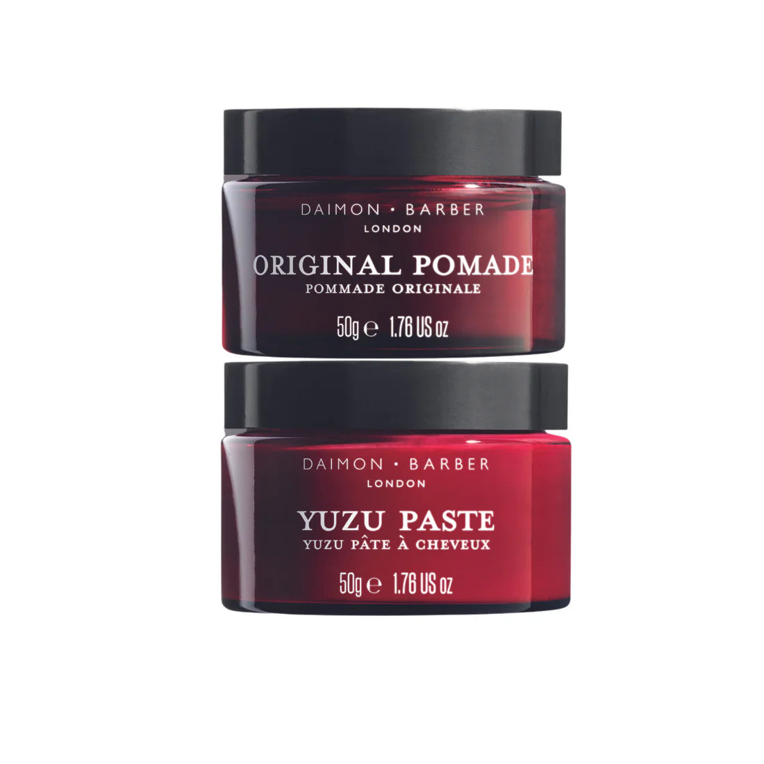 Embrace and enhance your natural curls with the Curly Hair Pair, a dynamic styling duo crafted to define, nourish, and control curls while preserving their natural bounce and softness. Featuring Daimon Barber’s Original Pomade and Yuzu Paste, this bundle is ideal for taming frizz, adding texture, and locking in moisture for curls that look and feel their best.