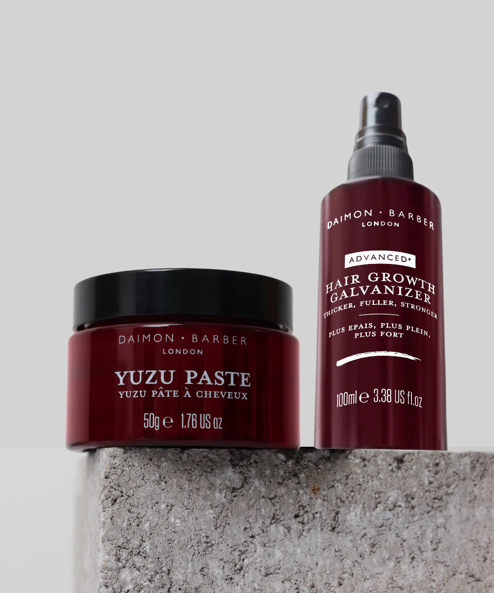 Boost your hair’s potential with the Growth Hair Pair, a dynamic duo designed to support healthy hair growth while offering flexible, everyday styling. Featuring Daimon Barber’s Hair Growth Galvanizer and Yuzu Paste, this bundle nourishes the scalp and strengthens strands, helping you achieve fuller, healthier-looking hair with texture and control.