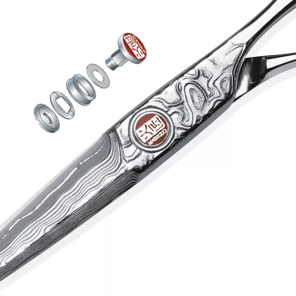 Each KASHO Damascus is perfectly crafted, yet beautifully individual. The blades are crafted from eight layers of premium VG-10W premium Japanese Stainless steel, resulting in ultimate sharpness and extremely powerful cutting. Thanks to hand-finishing, the unique Damascus patterning promises a one-of-a-kind scissor. And, with KASHO’s clever ball bearing system integrated with Flat Screw technology, every cut is always silky smooth.